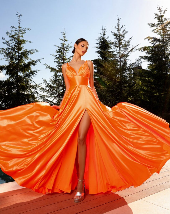 The Hayley Dress by Nicoletta offers a flattering V-neckline with a pleated bodice, accentuating your silhouette. The waistband cinches at the waist for a stunning look while the high leg split and pockets add style and functionality. Elevate your wardrobe with this beautiful and elegant dress.