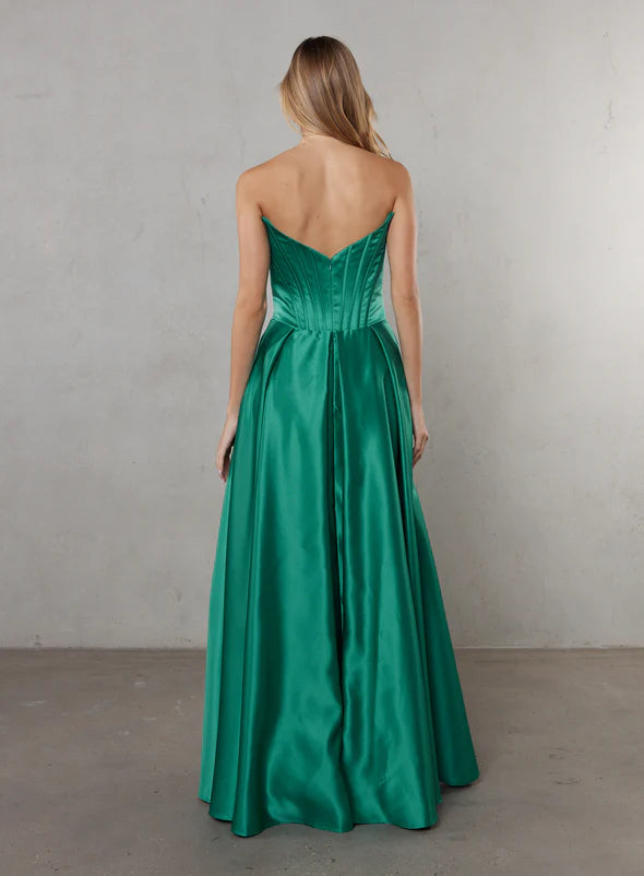 The full pleated skirt creates graceful movement with every step, while the high-leg split introduces a modern, confident edge. Perfect for formal events, weddings or special occasions, Freesia blends classic sophistication with contemporary style to create a truly memorable look.
