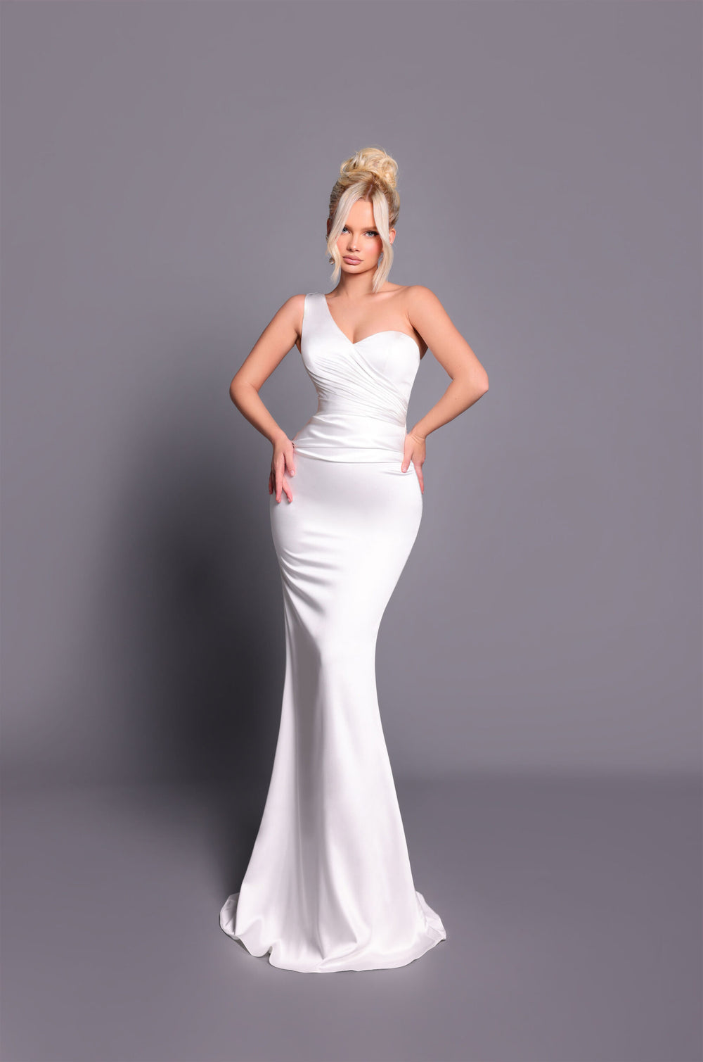 Expertly crafted with luxurious satin fabric, the Natalia Dress by Nicoletta NBM2015 is designed to flatter your figure with a pleated one shoulder neckline and structured bodice with built-in cups/boning. The pleated fitted skirt adds to the elegant silhouette. Available in plus sizes for all body types.