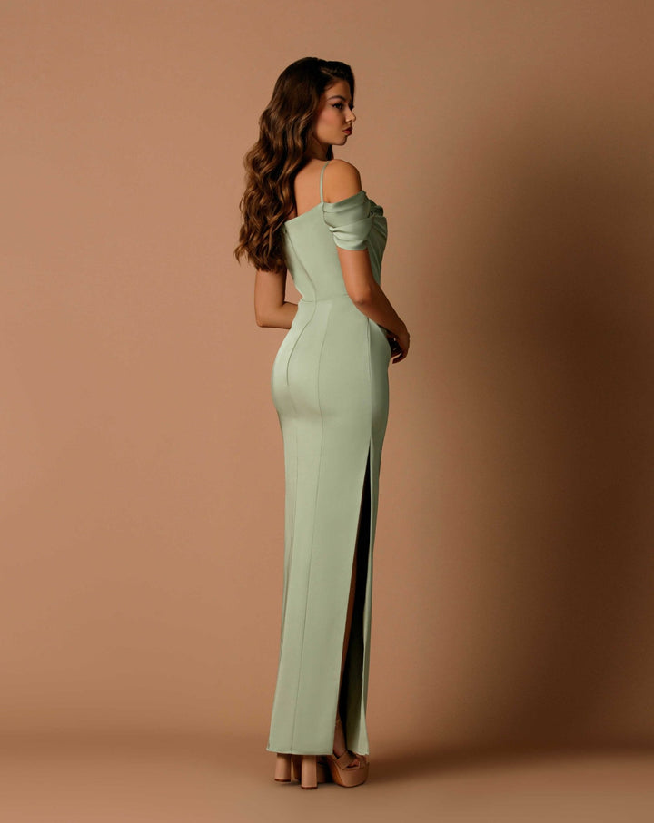 Introducing the Sasha Dress by Nicoletta, a luxurious and sophisticated addition to your wardrobe. With its cold shoulder design and straight neckline, this fitted dress exudes elegance and style. The ruching detail and high side split add a touch of allure to this exclusive piece. Elevate your look with the Sasha Dress.