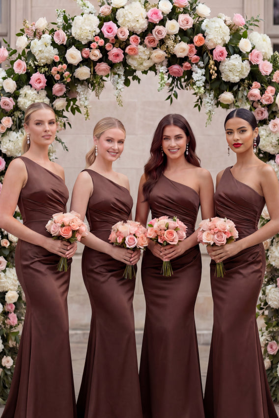 This elegant Alice Dress by Nicoletta NBM2028 exudes confidence and poise. The one shoulder design complements the gathered ruched bodice, creating a figure-flattering silhouette. Made of luxurious satin, it drapes beautifully and is perfect for any formal occasion. No split for a polished look.
