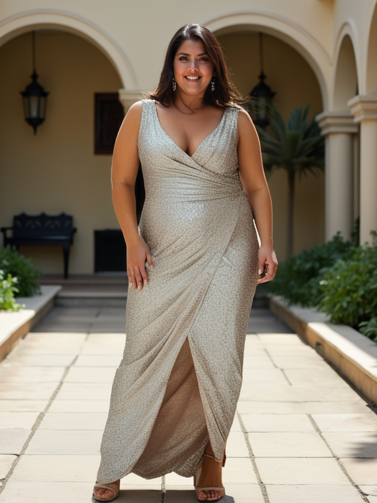 The Alexandria TO857 bridesmaid dress by Tania Olsen Designs is designed for a glamorous bridal party. Featuring an elegant v neckline with wide straps making it bra friendly. The floor length skirt has an overlap front opening falling into an elegant skirt split. Constructed from a soft stretch sequin fabric which makes it extremely comfortable to wear, a true Tania Olsen Designs trade mark.
