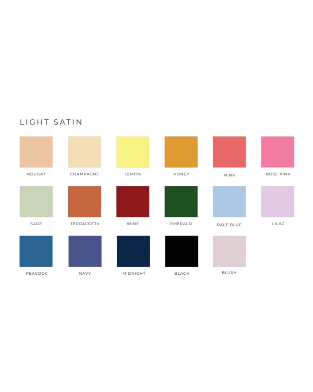 Available in: Black, Champagne, Navy, Midnight, Pale Blue, Lemon, Lilac, Wine, Terracotta, Emerald, Sage, Nougat, Mink, Rose Pink, Peacock, Honey, Blush